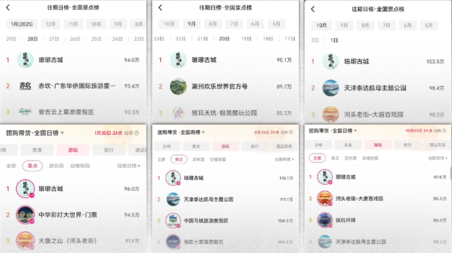 琅琊古城在2025年的春节、清明、五一、暑期、十一,连续五个黄金周霸榜抖音全国景点榜第一名。