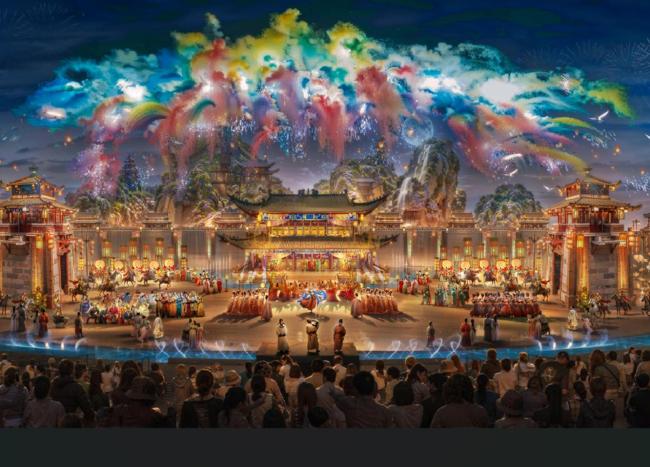大型情景六感室内演艺秀《国秀・琅琊》:超大型舞美道具装置搬上舞台,设有2600个座位;创新使用LED屏,复原古代乐器;实现水火交融,带来震撼体验。